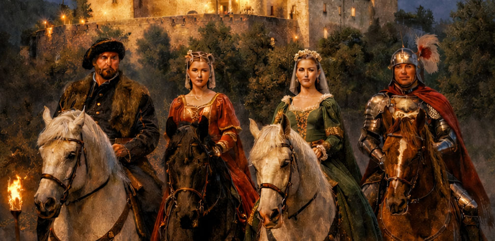 23. svibnja 2026. u 18 sati Ozalj Vas poziva... Doživite večer dostojnu knezova Zrinskih i Frankopana. Broj ulaznica u prodaji ograničen na 160 • Cijena: 70 € Domjenak i piće dobrodošlice uključeni su u cijenu. Vrata kaštela se otvaraju u 18 sati Predstava počinje u 19 sati Domjenak će biti poslužen u 20 sati. Naručite ulaznice - ispunite prijavnicu: broj ulaznica 1 2 3 4 5 6 7 8 9 10